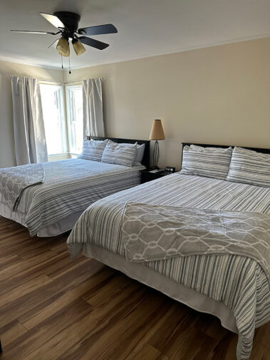 - 4 bedrooms (two rooms have 2 queen beds each and the other two rooms have 2 full beds each)