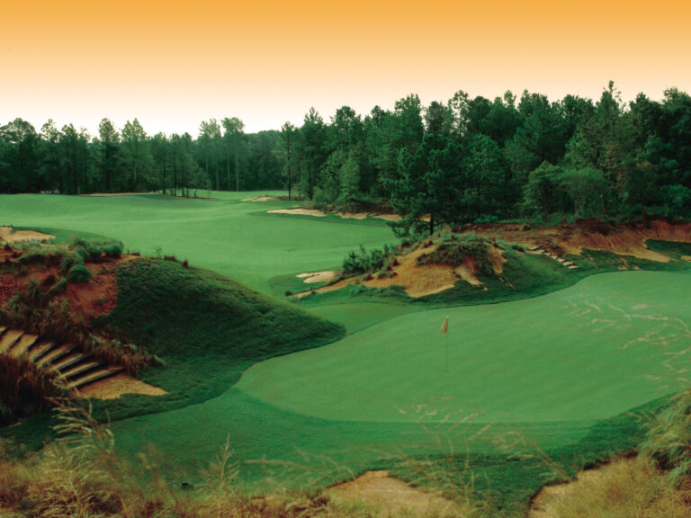Village of Pinehurst golf has never been the same since the opening of Tobacco Road. Described as “Pine Valley on steroids” and “golf’s rock and roll thrill ride”, Tobacco Road Golf Club is certainly unique. Carving his way through an old sand quarry, the late Mike Strantz created one of the most celebrated and talked about courses in the world. Consistently rated amongst the nation’s best, Tobacco Road showcases 18 drop-dead signature holes set amidst rolling Sandhills and golden love grass. The scene is so breath-taking you will want to bring along your camera to forever capture the greatness of “The Road”.